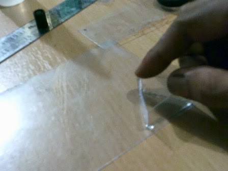 lembaran plastic mika, usahakan tidak ada udara yang terperangkap di dalamnya.